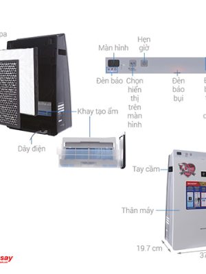 • Tính năng: Lọc bụi, bụi mịn, khử mùi, diệt khuẩn & tạo ẩm