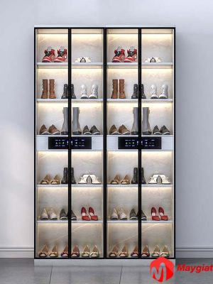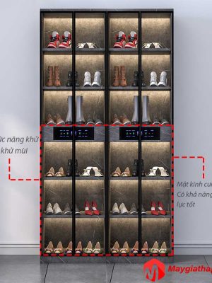- Mặt kính cường lực chịu lực tốt, dễ lau chùi vệ sinh tủ giày, an toàn khi sử dụng.